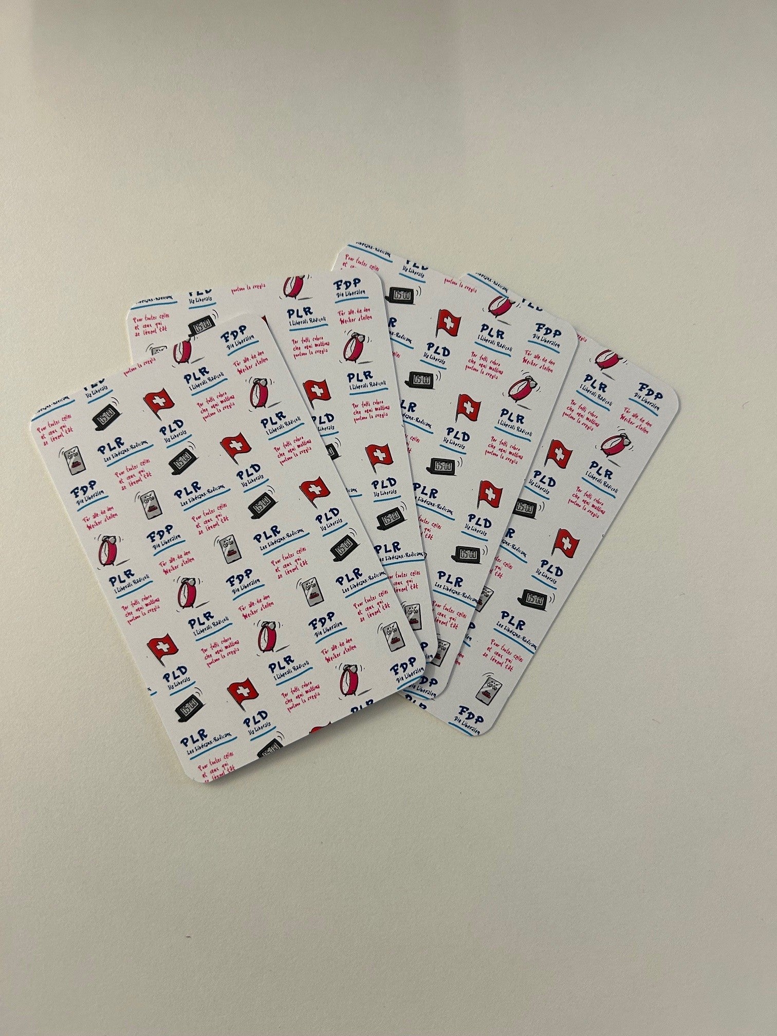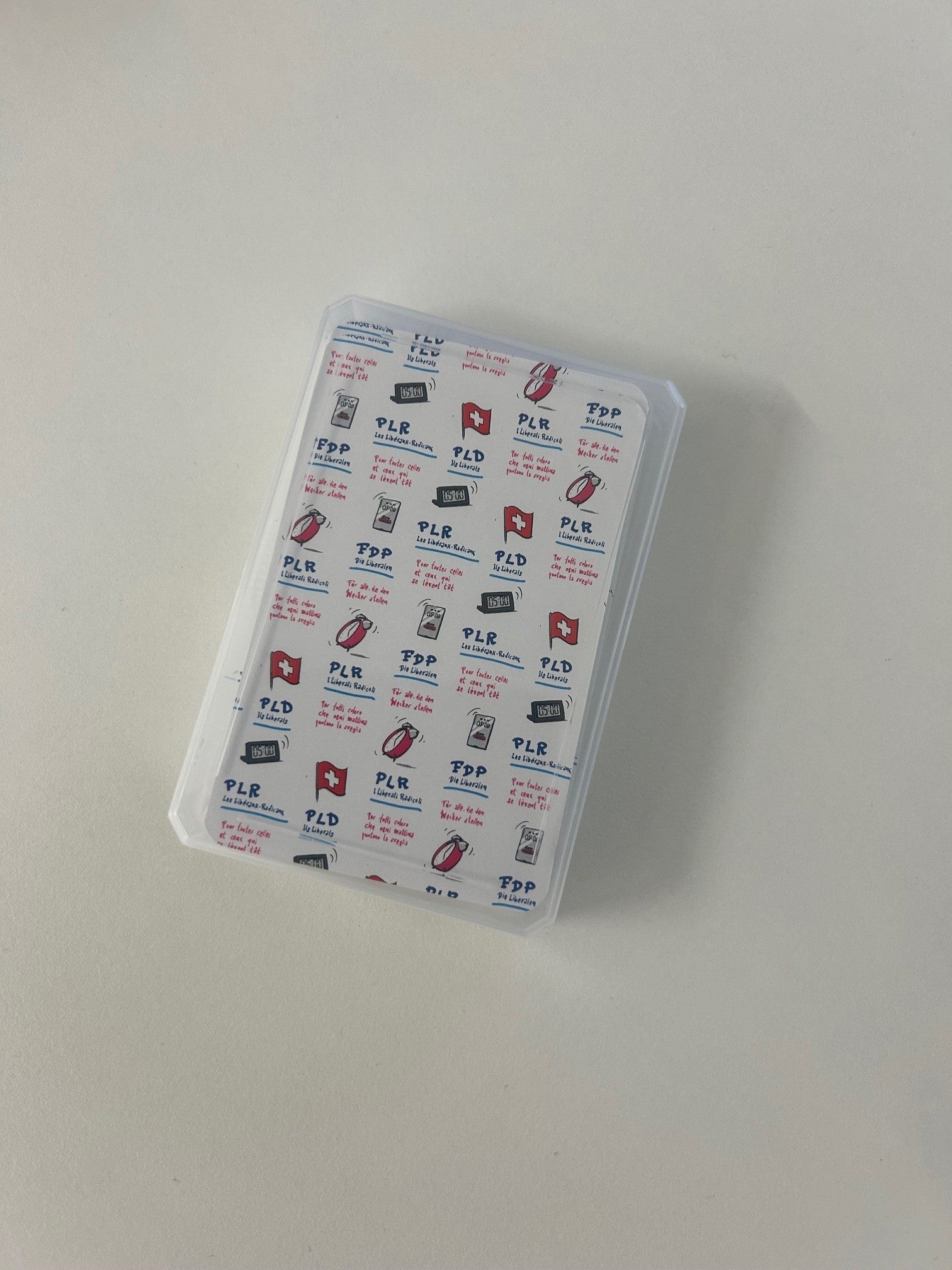 Dieses hochwertige Jasskartenset kombiniert französische und deutsche Symbole in einem praktischen Mixed-Design. Ideal für gesellige Jassrunden in der ganzen Schweiz – egal ob in der Beiz, im Verein oder zuhause am Küchentisch. Die Kartenrückseite ist im FDP Schweiz Design gebrandet. Das Set ist erhältlich in einer Transparentbox.
